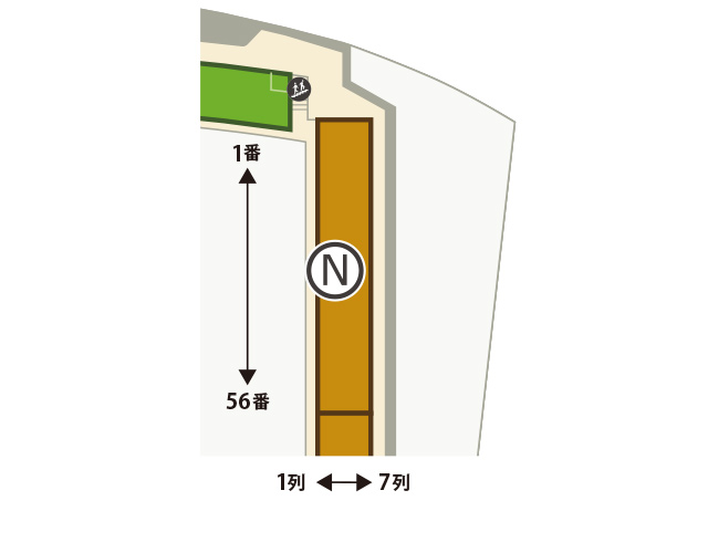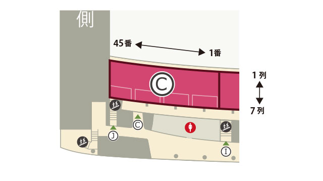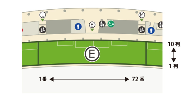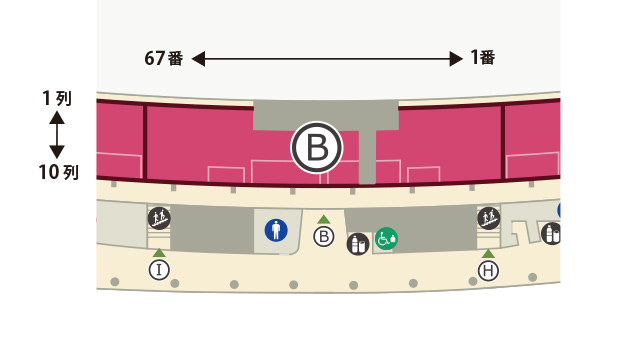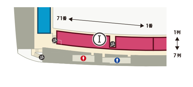 열 번호는 세로 방향으로 배열되어 있으며 아레나의 중심에서 바깥쪽으로 증가합니다.
